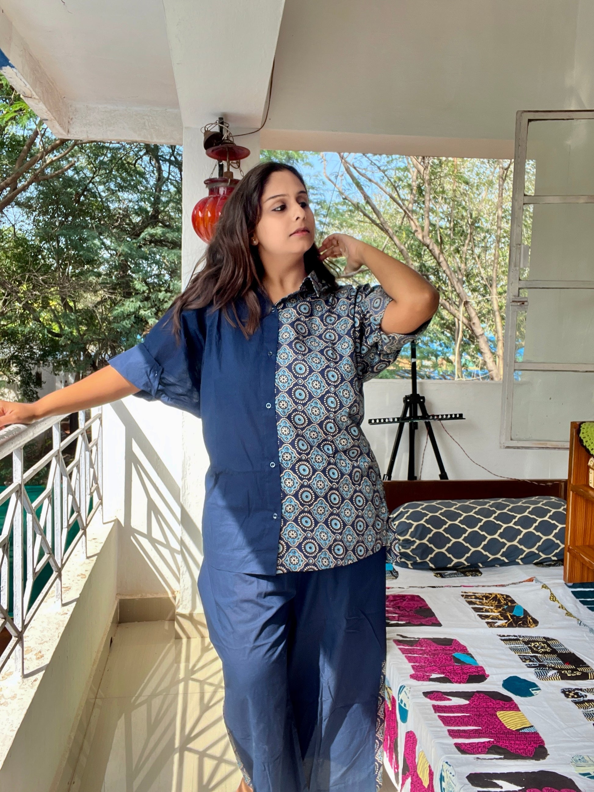 Ajrak Daily-Wear Baggy Coord Set Blue