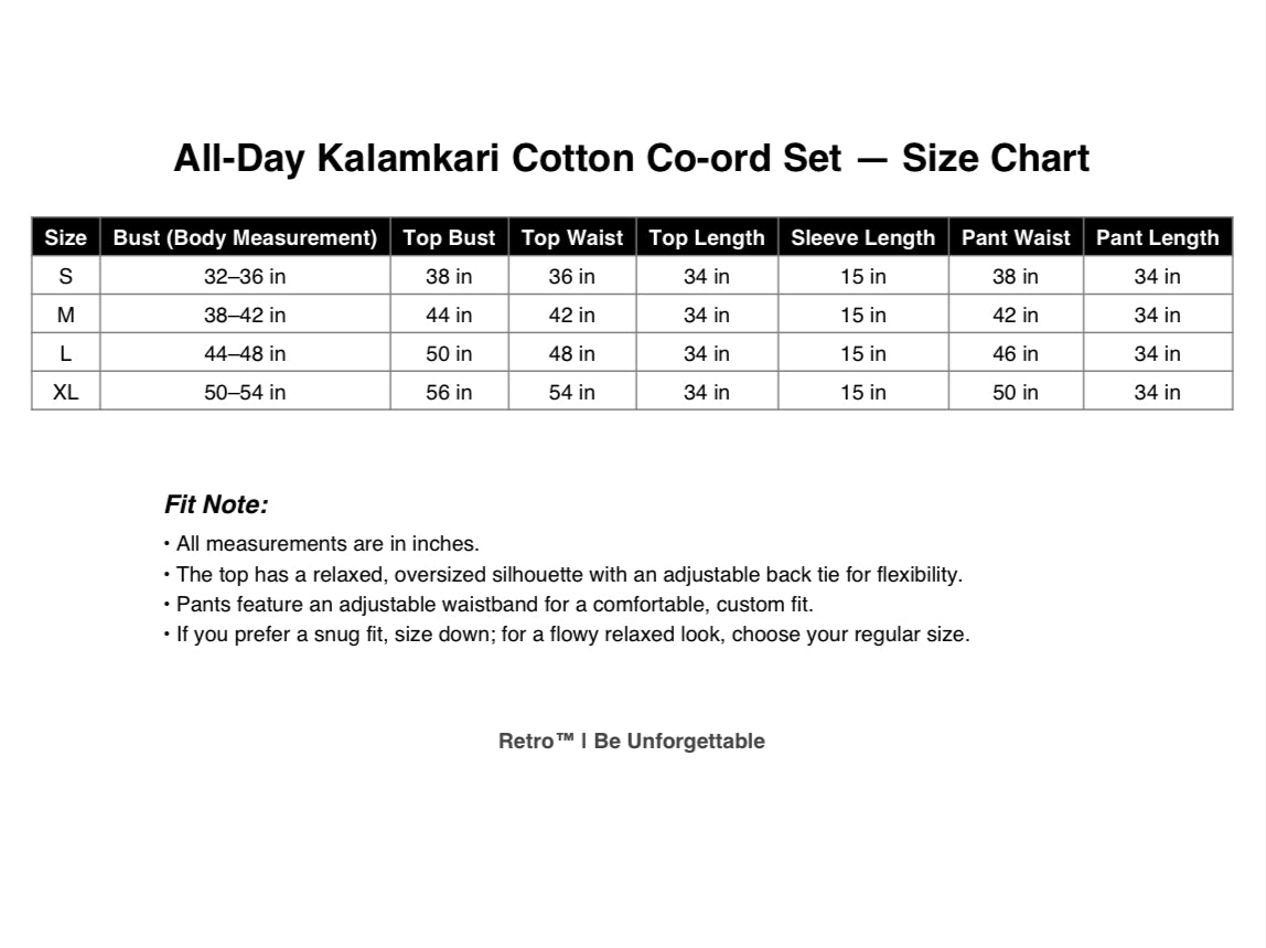 Step into comfort, culture, and effortless style with our All-Day Kalamkari Cotton Co-ord Set.
